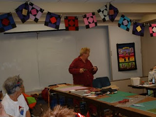 After we previewed the mystery quilt, Marcia S showed us the new mystery tote bag we were going to do this year. It turned out to be a smaller version of a Bow Tuck-type bag. With lots of inside pockets and one on the outside, it's the perfect size for everyday use.